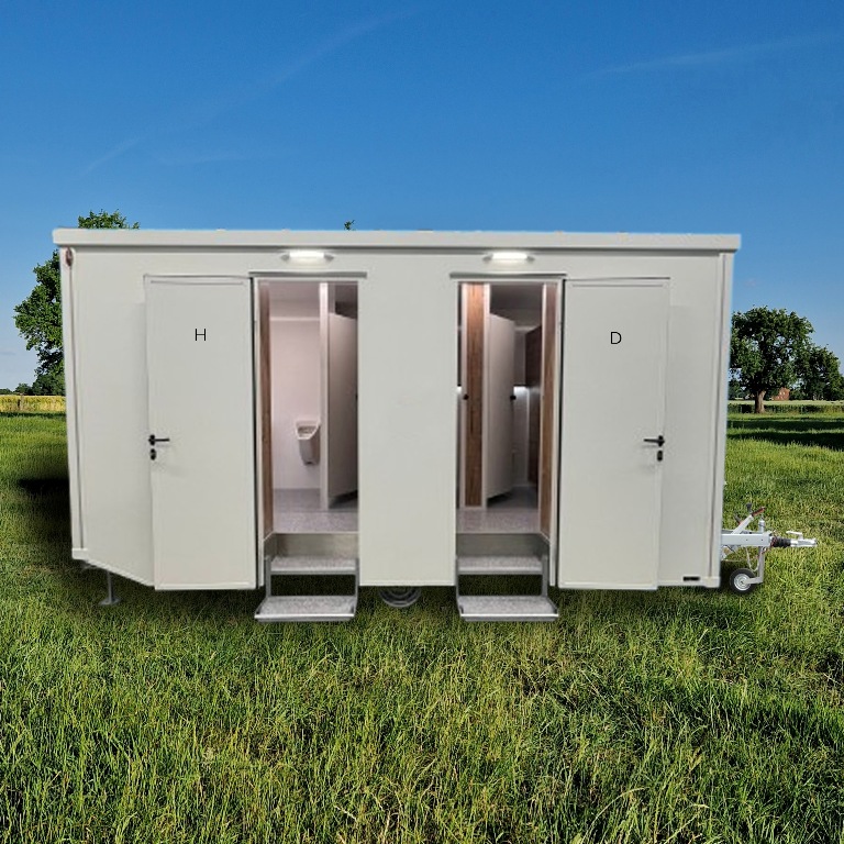 Ein Mobiler Toilettenwagen ist ein transportables Sanitärsystem, das speziell für den temporären Einsatz bei Veranstaltungen, Baustellen oder anderen Orten ohne fest installierte Sanitäranlagen konzipiert ist. Er enthält in der Regel mind. eine Toilette sowie ein Waschbecken.